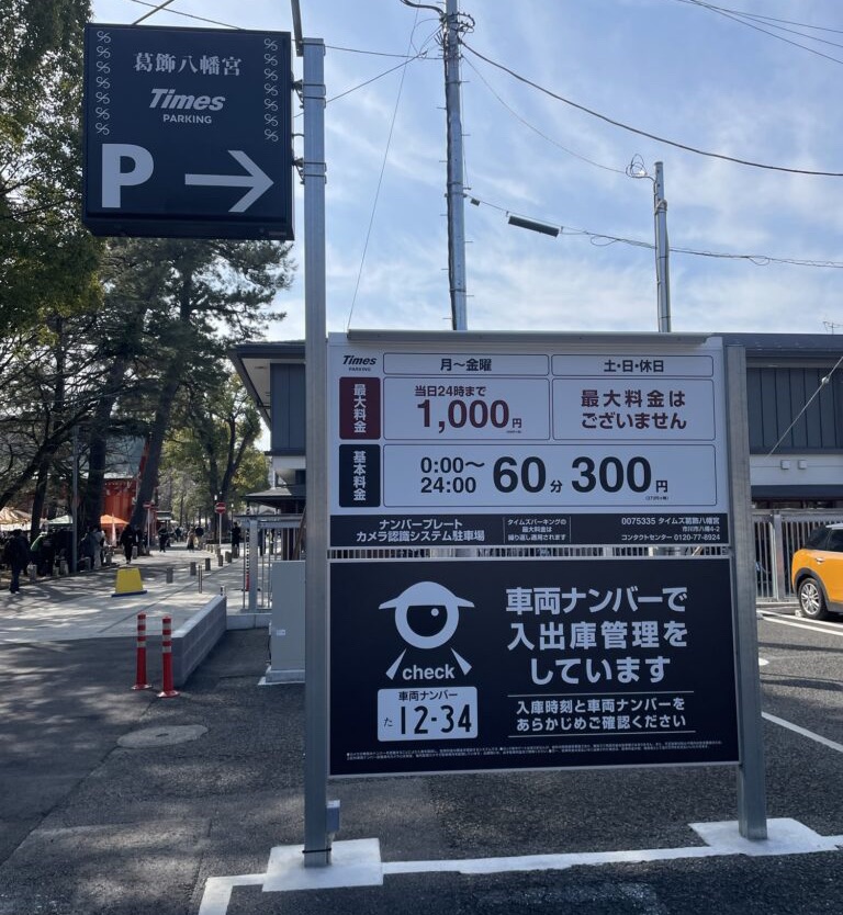 葛飾八幡宮近辺の駐車場は2ヶ所ありました。