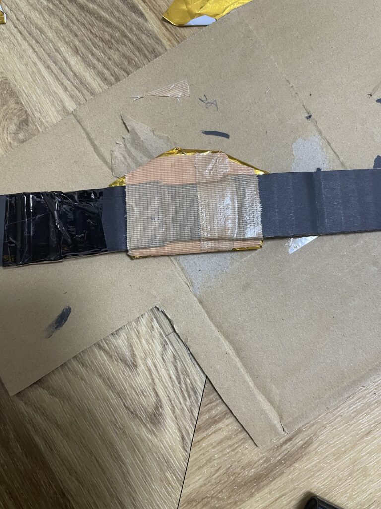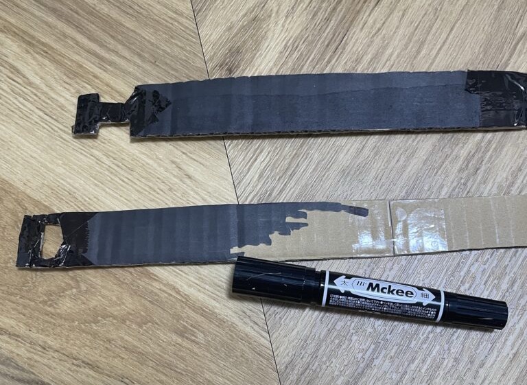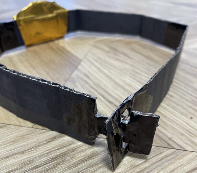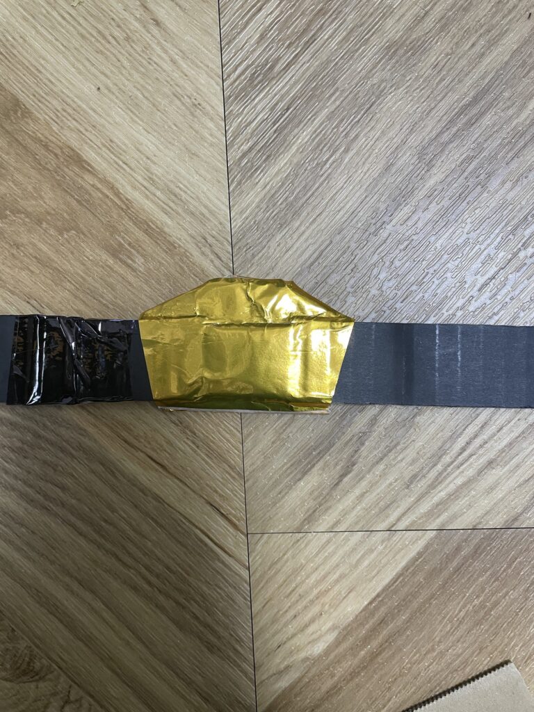 ガムテープで貼った部分を金色折り紙で隠します(バックル裏側になるのでそのままでもOKです)