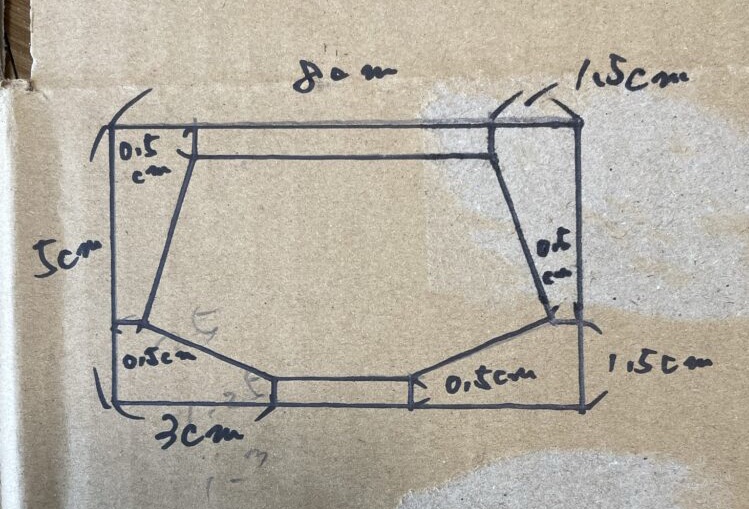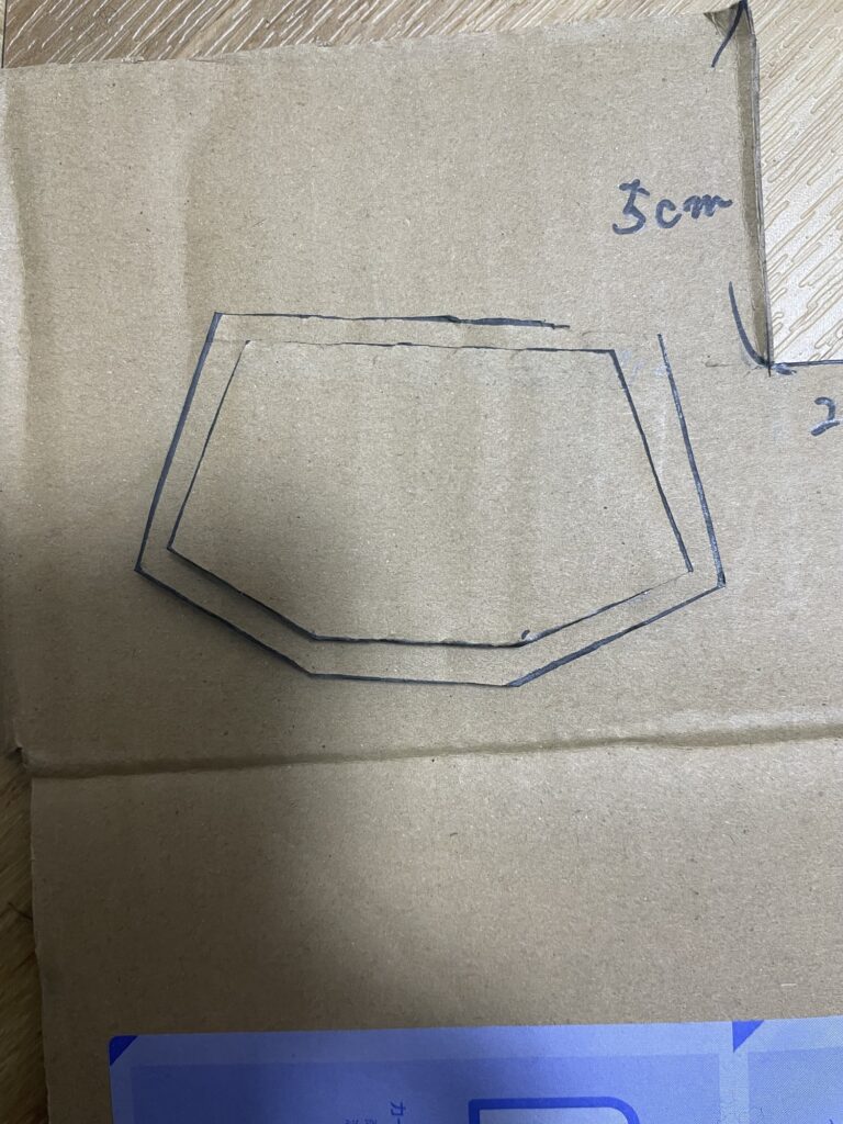 ダンボールに寸法を書きます